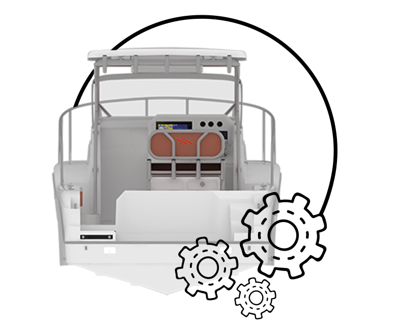Balıkçılık ekipmanlarını barındıracak kilitli dolapların yanı sıra canlı balık ve balıklar için 2 büyük kıç havzası sıkıntısı yoktur.